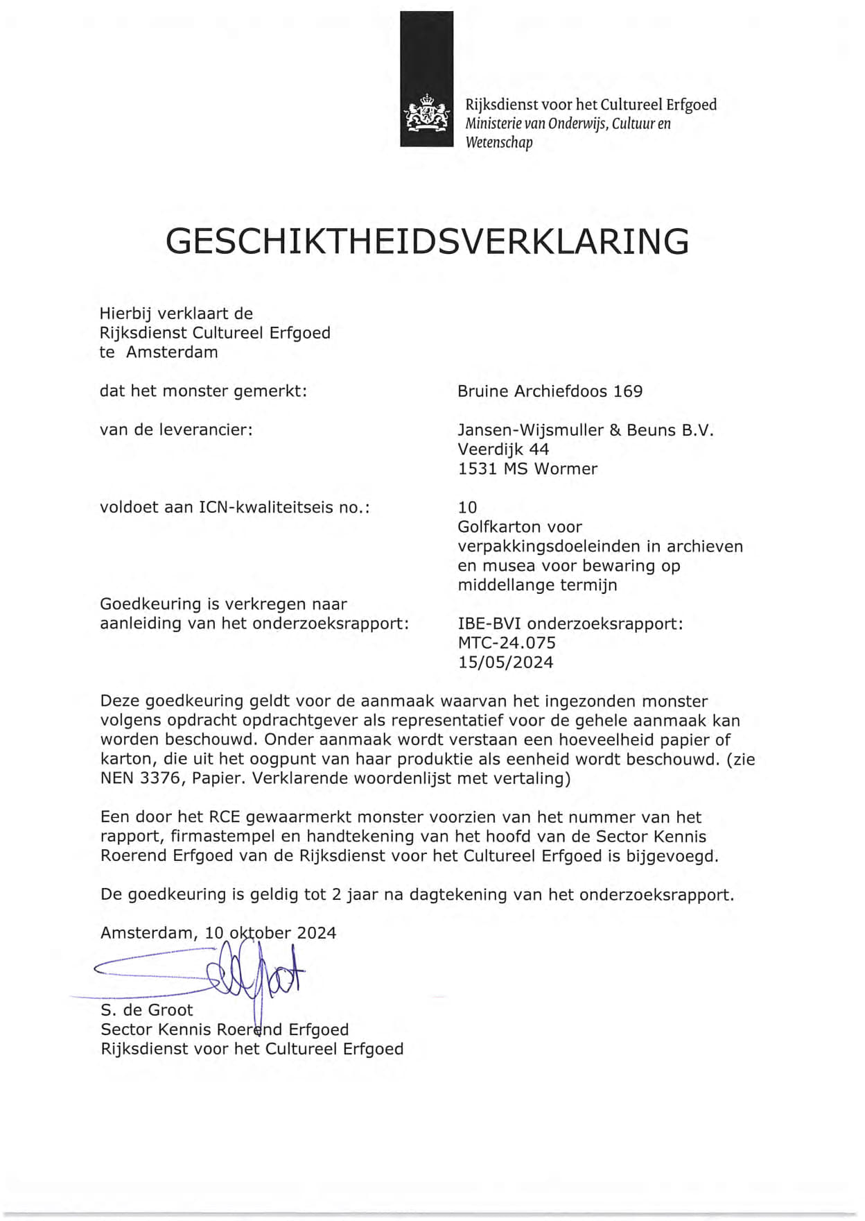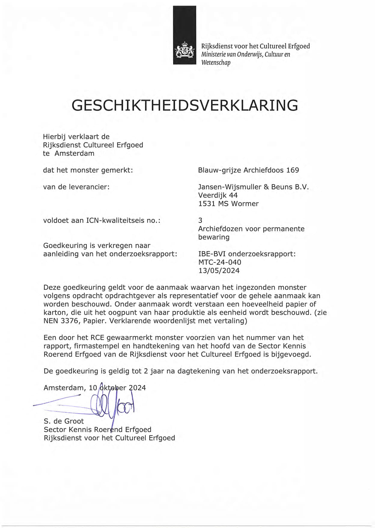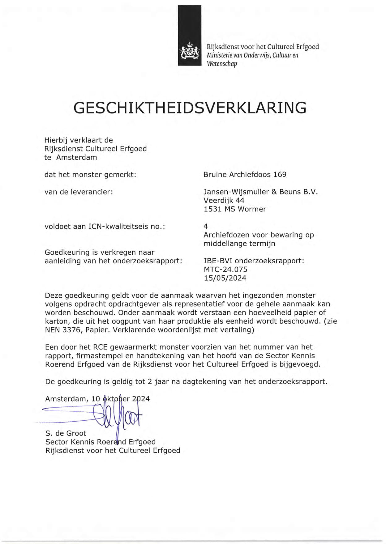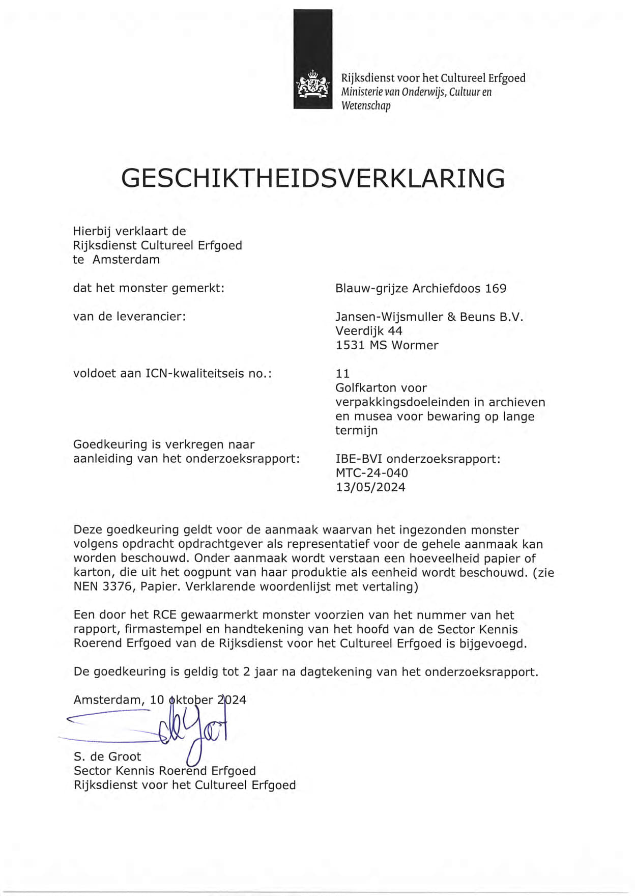 Conform de archiefwet dienen de materialen die ingezet worden voor het bewaren van ons (culturele) erfgoed, te voldoen aan strenge eisen.